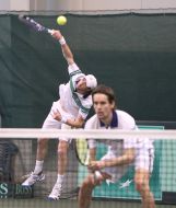 Член збірної України з тенісу Ілля Марченко (277-й у світі) під час поєдинку першого раунду з Бенджаміном Баллере з Монако (320-й у світі) в матчі Кубка Девіса, в Дніпропетровську, у п'ятницю, 10 лютого 2012 р. У цей день відбувся матч другої групи Євро-Африканської зони Кубка Девіса між збірними України та Монако. Ілля Марченко в чотирьох сетах зломив опір Бенджаміна Баллере з рахунком 3:6, 6:3, 6:1, 6:1, і приніс одне очко для збірної України. Фото Станіслава Сердюка / УНІАН