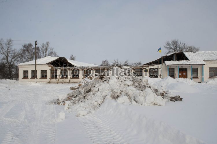 Зруйнована будівля загальноосвітньої школи І-III ступені в с. Барвіновка (Житомирська обл.), у четвер, 16 лютого 2012 р. Цього дня голова ВРУ приїхав в Житомирську обл. з робочою поїздкою. У селі Барвіновка Новоград-Волинського району через велику кількість снігу зруйнувалося 60 кв. м даху учбового корпусу Барвінівської загальноосвітньої середньої школи. За повідомленням прес-служби МНС України, в результаті обвалення ніхто не постраждав. Загроза іншим будівельним конструкціям відсутня. Матеріальні збитки встановлюються. Дана подія на учбовий процес не вплинула. Фото Анастасії Сироткіної / POOL / УНІАН