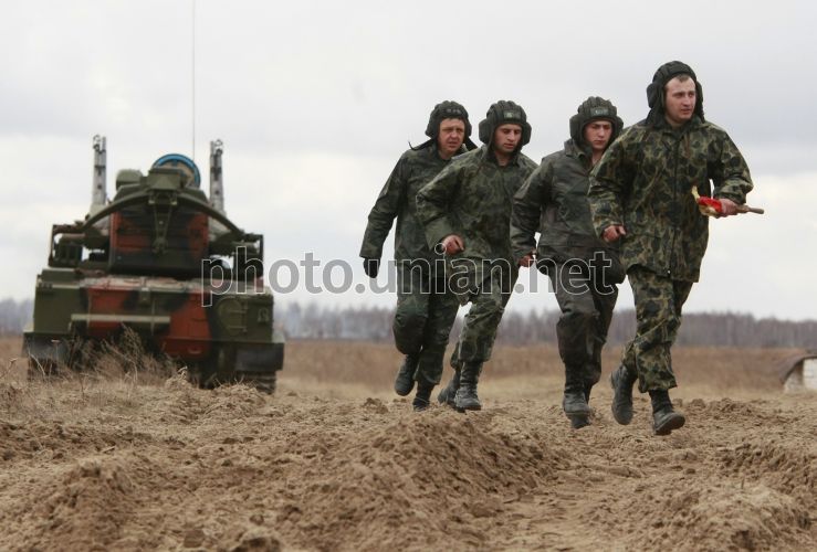 Зенітно-ракетні гарматні комплекси «Тунгуска» під час стрільб в рамках підготовки підрозділів протиповітряної оборони 8-го армійського корпусу Сухопутних військ Збройних Сил України, які залучатимуться до забезпечення безпеки проведення Євро-2012, на полігоні 1-ї окремої танкової бригади, в смт. Гончарівське (Чернігівська обл.), у четвер, 22 березня 2012 р. Фото Володимира Гонтара / УНІАН