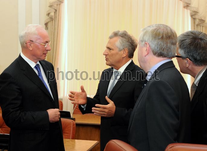 Екс-президент Польщі Олександр Квасневський, екс-президент Європейського парламенту Пет Кокс та прем'єр-міністр України Микола Азаров на зустрічі у Києві, у вівторок, 26 червня 2012 р. Фото Олега Маркевича / POOL / УНІАН