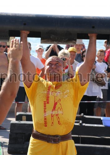 Учасник змагань під час турніру з багатирського багатоборства, в Севастополі, в неділю, 22 липня 2012 р. На набережній в Севастополі відбувся турнір з багатирського багатоборства, присвячений Дню ВМФ. У змаганнях взяли участь найсильніші атлети Криму і Севастополя. Фото УНІАН