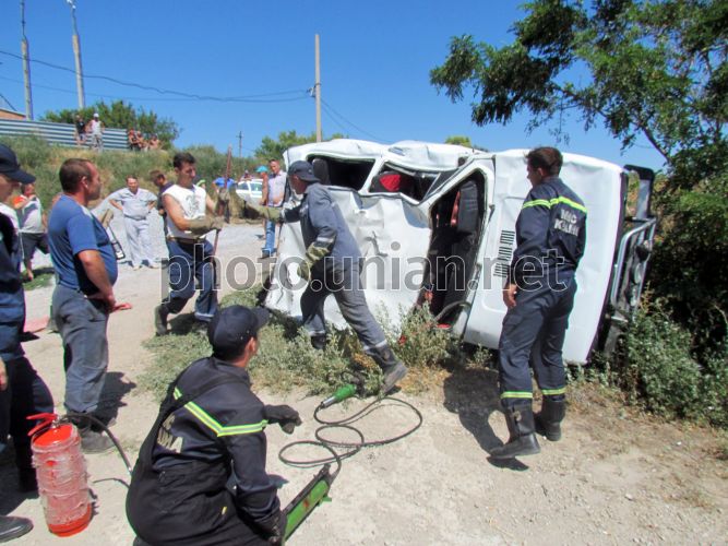 Співробітники МНС біля автомобіля «Нива», що зірвався з обриву, в с. Обрив (Новоазовський р-н, Донецька обл.), у суботу, 28 липня 2012 р. У селі Обрив (поблизу з кордоном РФ) стався нещасний випадок: з обриву зірвався автомобіль «Нива». У машині знаходилася пара – 19-річний хлопець з Новоазовська та його 20-річна супутниця з Горлівки. Машину знайшли вранці, коли оперативні служби прибули на місце трагедії, дівчина вже була мертва, а хлопець подавав ознаки життя, його відвезли до лікарні. Фото Миколи Рябченка / УНІАН