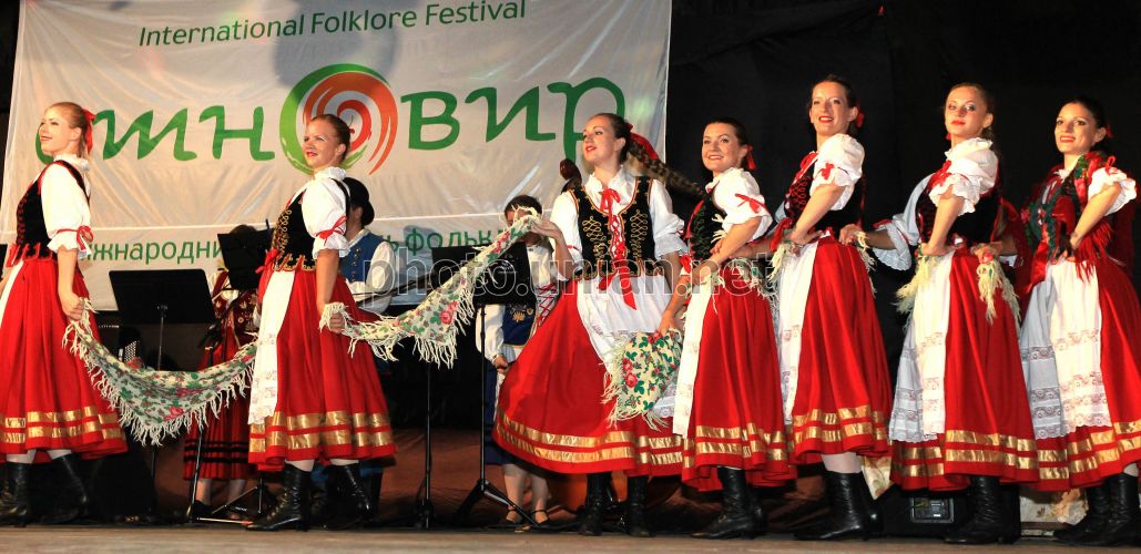 Учасники фестивалю танцюють під час гала-концерту на Міжнародному фестивалі фольклору «Етновир», у Львові, у неділю, 26 серпня 2012 р. Міжнародний фестиваль фольклору «Етновир» проходитить у Львові з 22 по 26 серпня 2012 року. Кожен колектив, окрім фольклору, представить ще й кухню своєї країни. Прямо на площі Ринок можна буде спробувати страви іспанської, турецької, польської, білоруської та інших кухонь. Фото Євгенія Кравса / УНІАН