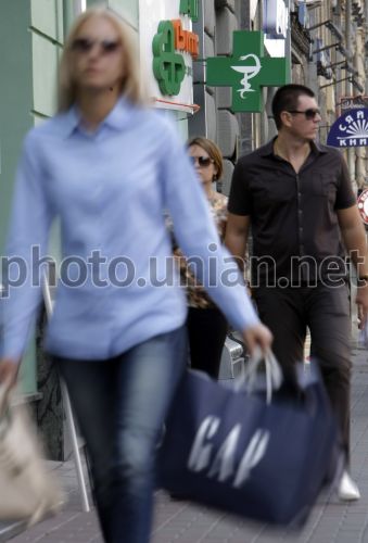Перехожі біля аптеки в Києві, у четвер, 13 вересня 2012 р. Міністерство охорони здоров'я вивчає можливість введення обмежень на кількість аптек, встановивши норму з розрахунку одна аптека на 5000 населення. За повідомленням деяких ЗМІ, про це