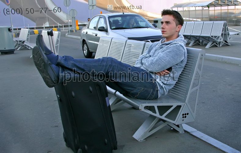 Хасид (прихильник однієї з гілок іудаїзму) сидить, поклавши ноги на валізу, в аеропорту "Бориспіль" (Київська обл.), в четвер, 20 вересня 2012 р. У цей день хасиди, які зустрічали єврейський Новий рік - Рош ха-Шана в Україні, відлітають додому. У 2012 році Рош ха-Шана - Новий рік, 5773-й від створення світу за єврейським календарем, настав із заходом сонця в неділю 16 вересня. Хасиди з усього світу зустріли єврейський Новий рік на могилі пророка цадика Нахмана в Умані. Всі євреї, які представляють напрямок хасидизму, вважають своїм обов'язком побувати хоча б раз у своєму житті на могилі цадика Нахмана. Вони також вважають, що якщо вони зустрінуть Новий рік - Рош ха-Шана біля його могили, то наступний рік буде дуже щасливим для них. Вони приїжджають до Умані цілими громадами, разом із жінками та дітьми. Вважається, що в цей день, який частіше називають "шостим днем творіння", Бог завершив створення світу і створив першу людину - Адама. Фото Олександра Синиці / УНІАН