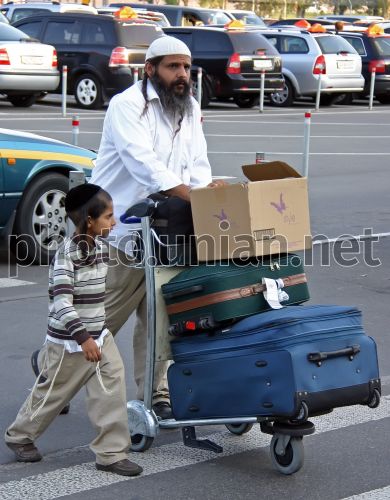 Хасиди (прихильники однієї з гілок іудаїзму), котрі святкували єврейський Новий рік - Рош ха-Шана в Україні, відлітають додому, в аеропорту "Бориспіль" (Київська обл.), в четвер, 20 вересня 2012 р. У цьому році Рош ха-Шана - Новий рік, 5773-й від створення світу за єврейським календарем, настав із заходом сонця в неділю 16 вересня. Хасиди з усього світу зустріли єврейський Новий рік на могилі пророка цадика Нахмана в Умані. Всі євреї, які представляють напрямок хасидизму, вважають своїм обов'язком побувати хоча б раз у своєму житті на могилі цадика Нахмана. Вони також вважають, що якщо вони зустрінуть Новий рік - Рош ха-Шана біля його могили, то наступний рік буде дуже щасливим для них. Вони приїжджають до Умані цілими громадами, разом із жінками та дітьми. Вважається, що в цей день, який частіше називають "шостим днем творіння", Бог завершив створення світу і створив першу людину - Адама. Фото Олександра Синиці / УНІАН