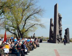 Прем'єр-міністр України Микола Азаров виступає на жалобному мітингу біля меморіалу «Нескорені» з нагоди 70-річчя з дня створення підпільної молодіжної організації «Молода гвардія» в місті Краснодон Луганської області, у суботу, 29 вересня 2012 р. Прем'єр-міністр знаходиться в Луганській області з робочим візитом. Фото Олега Маркевича / POOL / УНІАН