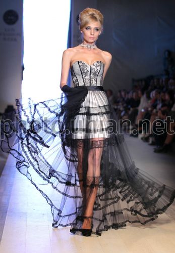 Модель демонструє одяг від українського дизайнера Оксани Мухи на X Lviv Fashion Week сезону весна/лето-2013 у Львові, в суботу, 7 жовтня 2012 р. Колекцією вечірніх та весільних суконь від львівського модельєра одягу завершився 10-й сезон Lviv Fashion Week. Фото УНІАН