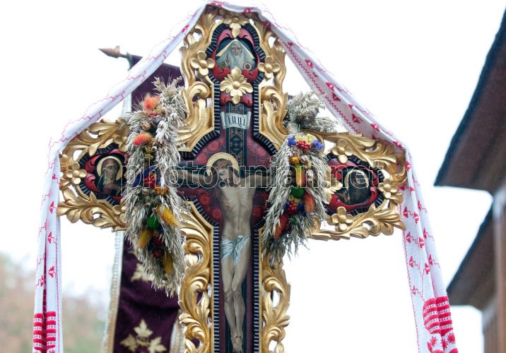 Розп'яття під час божественної літургії в козацькій церкві Покрови Пресвятої Богородиці з нагоди 1102-ої річниці від початку дня відзначення свята Покрова Пресвятої Богородиці, в козацькому селищі "Мамаєва Слобода", в Києві, у неділю, 14 жовтня 2012 р. Літургія пройшла в рамках козацького свята «Гей, вернися, Сагайдачний!», присвяченого святу Покрови Пресвятої Богородиці. Фото Бориса Закалюка / УНІАН