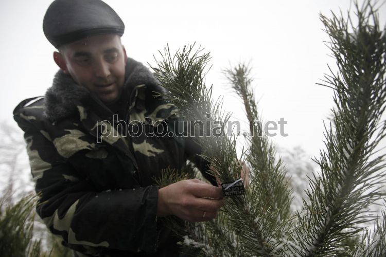 Співробітник Димерського лісгоспу Київського обласного управління лісового та мисливського господарства демонструє спеціальний електронний чип для новорічної ялинки, у четвер, 6 грудня 2012 р. Як заявив на брифінгу голова Державного агентства лісових ресурсів України Віктор Сивець, що українців за новорічні ялинки без спеціальних електронних чипів штрафуватимуть мінімум на 274 грн. За його словами, цього року, як і минулого, всі новорічні ялинки оснащуватимуться спеціальними електронними чипами, на яких буде інформація про походження цього дерева. Торгівля новорічними ялинками буде заборонена, і порушники, згідно з постановою Кабміну №665, платитимуть штраф, розмір якого залежатиме від діаметра зрубаної ялини. Так, за ялину діаметром до 10 см передбачається штраф 189 грн, від 10 до 14 см – 333 грн, від 14 до 18 см – 754 грн, 18-22 см – 1 753 грн. Крім того, за словами чиновника, порушник повинен буде сплатити штраф від 5 до 10 неоподатковуваних мінімумів, тобто 85-170 грн. «Таким чином, за незаконно зрубану ялинку кожен порушник платитиме мінімум 274 грн», - сказав Сивець, уточнивши, що штрафуватимуться не тільки підприємці, які продають незаконні ялинки, а й будь-який громадянин, у якого виявлять хвойне дерево без чипа. Крім того, підприємцям, які реалізовуватимуть незаконні ялинки, окрім штрафу загрожує кримінальна справа. Він повідомив, що цього року вартість одного чипа становить до три гривень залежно від регіону країни. При цьому Сивець заявив, що чипи не вплинуть на кінцеву вартість новорічних ялинок на ринку. За його прогнозами, цього року збережеться тогорічна ціна, яка становила від 80 до 150 грн. Фото Владислава Мусієнка / УНІАН