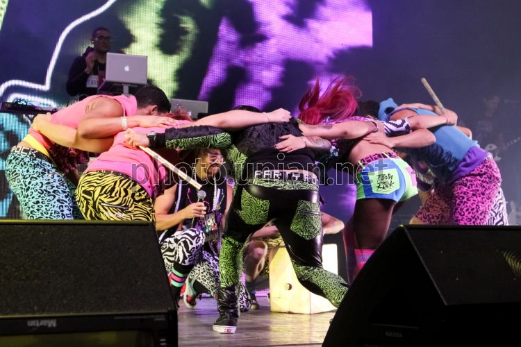 Танцюристи на сцені під час вистпленія американського денс хіп-хоп дуету LMFAO в Києві, у п'ятницю, 7 грудня 2012 р. У цей день в столиці пройшов перший концерт популярного танцювального дуету в Україні. Фото Вальдемара Горлушко / УНІАН