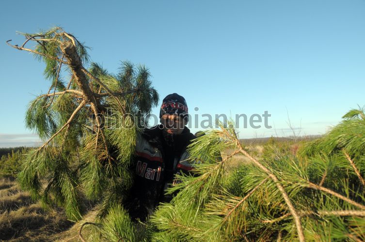 Лісник несе зрубану для продажу сосну в Чугуєво-Бабчанському лісгоспі в Чугуївському р-ні, Харківської обл., у вівторок, 11 грудня 2012 р. Фото Володимира Андреєва / УНІАН