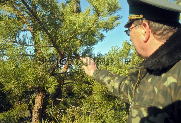 Лісник розглядає шишки на сосні в Чугуєво-Бабчанському лісгоспі в Чугуївському р-ні, Харківської обл., у вівторок, 11 грудня 2012 р. Фото Володимира Андреєва / УНІАН