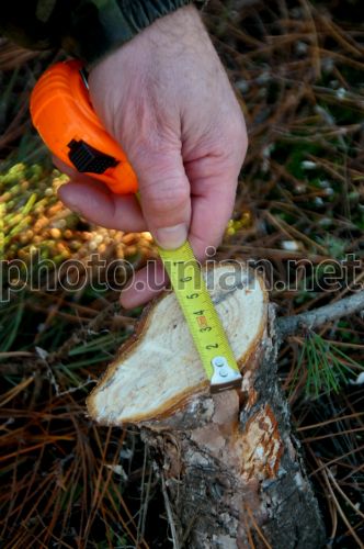 Співробітник міліції виміряє пеньок від зрубаної сосни в Чугуєво-Бабчанському лісгоспі в Чугуївському р-ні, Харківської обл., у вівторок, 11 грудня 2012 р. Фото Володимира Андреєва / УНІАН