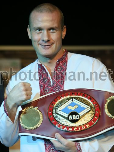Інтерконтинентальний чемпіон за версією WBO в напівважкій вазі В'ячеслав Узєлков під час прес-конференції перед боєм зі швейцарським боксером Соф'ян Себіхі, у Києві, у середу, 6 березня 2013 р. 16 березня 2013 р. в Києві пройде боксерське шоу компанії братів Кличків "K2 Promotions". В головному поєдинку вечора Інтерконтинентальний чемпіон за версією WBO в напівважкій вазі В'ячеслав Узєлков проведе захист титулу. Фото Володимира Гонтара / УНІАН