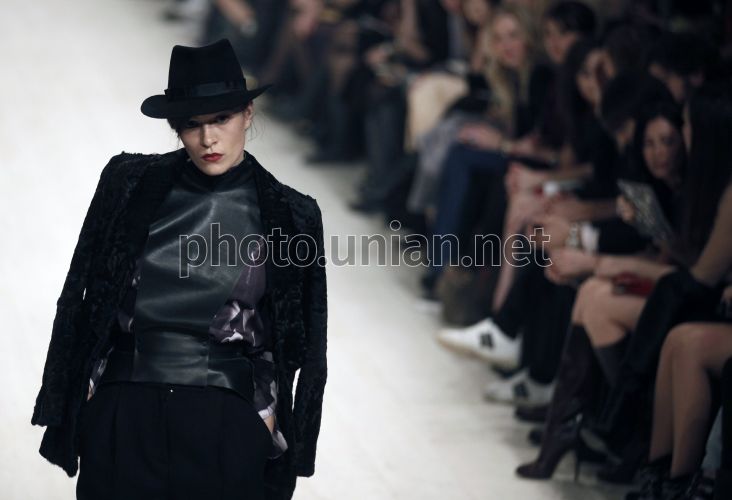 Модель демонструє одяг з колекції українського дизайнера Ольги Альонової в рамках 32-го Українського тижня моди Ukrainian Fashion Week сезону осінь-зима 2013-14 у Києві, в четвер, 7 березня 2013 р. Фото Владислава Мусієнка / УНІАН