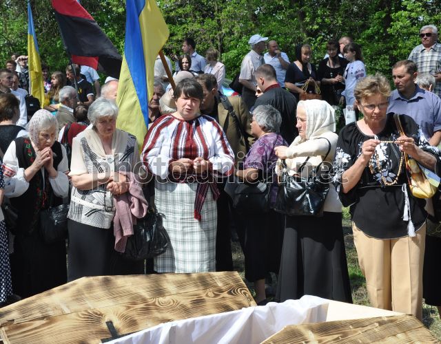 Митрополити, священики і монахи різних конфесій відправляють панахиду за загиблими під час церемонії перепоховання останків 600 жертв НКВС 1939-1941 років, у с. Пшеничники (Івано-Франківська обл.), у четвер, 9 травня 2013 р. Цього дня у с. Пшеничники Тисменицького району Івано-Франківської області було перепоховано останки 600 жертв НКВС 1939-1941 років. Масове поховання у Пшеничниках виявили члени обласного історико - просвітницького товариства «Меморіал» ще в 2011 р. Науковці, які проводили розкопки, розповідали, що тіла жертв були поховані – на глибині від 20 см до 70 см. У кістках знаходили гаки і цвяхи, але слідів вогнепальних поранень немає. Не знайшли також решток одягу: очевидно, жертв поховали голими. Науковці припускають, що саме тому в червні 1941 року було виявлено величезні купи одягу в Станіславській тюрмі, яку енкаведисти поспіхом покинули перед приходом німців. Серед похованих у Пшеничниках багато жінок і зовсім маленьких дітей. Фото Тараса Кашуби / УНІАН