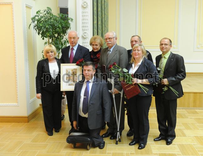 Прем'єр-міністр України Микола Азаров, другий ліворуч, під час зустрічі з представниками всеукраїнських громадських об'єднань інвалідів у Києві, у вівторок, 12 листопада 2013 р. Цього дня в Києві прем'єр-міністр України Микола Азаров провів зустріч з представниками всеукраїнських громадських об'єднань інвалідів. Фото Олега Маркевича / прес-служба КМУ / POOL / УНІАН