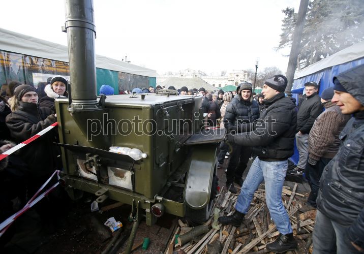 Польова кухня під час мітингу прибічників Партії регіонів біля будівлі Верховної Ради України в Києві, в середу, 4 грудня 2013 р. Фото Олександра Синиці / УНІАН