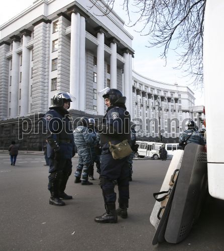 Співробітники міліції біля будівлі Кабінету Міністрів України в Києві, в середу, 4 грудня 2013 р. Фото Олександра Синиці / УНІАН