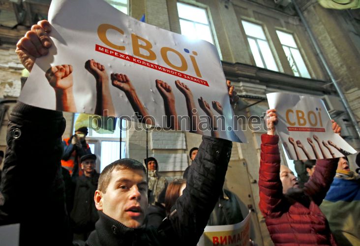 Активісти Євромайдану пікетують Печерський суд Києва з вимогою звільнити "в'язня Банкової" Ярослава Притуленка, у середу, 8 січня 2014 р. Декілька сотень активістів Євромайдану пікетують Печерський районний суд Києва з вимогою звільнити Ярослава Притуленка, арештованого після штурму Адміністрації Президента 1 грудня. Засідання суду тривало не більше 5 хвилин. Сам Притуленко не був доставлений до суду. Жоден представник Генеральної прокуратури теж не з'явився. Фото Олександра Синиці / УНІАН