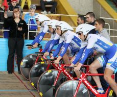 Учасник зимового чемпіонату України з велосипедного спорту, велосипедист національної збірної України Ілля Клепіков під час командних гонок переслідування на 4 кілометри у Львові, в суботу, 15 лютого 2014 р. На єдиному в Україні критому велотреку навчально-спортивної бази літніх видів спорту МО України у м. Львові відбувся зимовий чемпіонат України з велосипедного спорту - трек (чоловіки, жінки, юніори, юніорки, юнаки, дівчата). Фото УНІАН