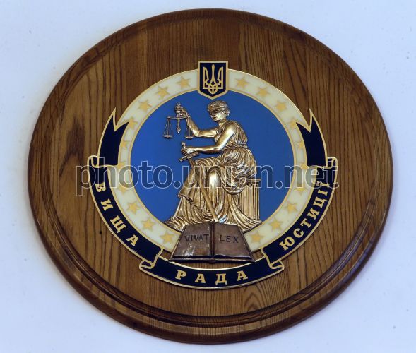 Емблема з написом: "Вища рада юстиції", у Києві, у вівторок, 25 лютого 2014 р. Засідання Вищої раді юстиції не відбулося. Фото Олександра Синиці / УНІАН