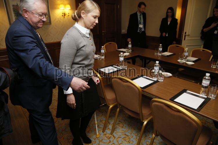 Лідер ВО "Батьківщина", кандидат в президенти України Юлія Тимошенко і народний депутат України Борис Тарасюк під час зустрічі з міністром закордонних справ Швеції Карлом Більдтом в Києві, у п’ятницю, 11 квітня 2014 р. Фото Володимира Гонтара / УНІАН