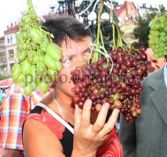 Виноград, представлений на фестивалі "Свято винограду і вина", в Івано-Франківську, в неділю, 31 серпня 2014 р. В Івано-Франківську 30-31 серпня пройшов перший фестиваль "Свято винограду і вина". Фото Тараса Кашуби / УНІАН