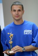 COMM Бронзовий призер чемпіонату світу з біатлону 2007 р. Андрій Дериземля на прес-конференції НОК України у Києві у п’ятницю, 23 лютого 2007 р. Дериземля отримав спеціальний приз від спонсорів за вдалий виступ на чемпіонаті світу – 75 тис. грн. Фото Олександра Лепетухи / УНІАН