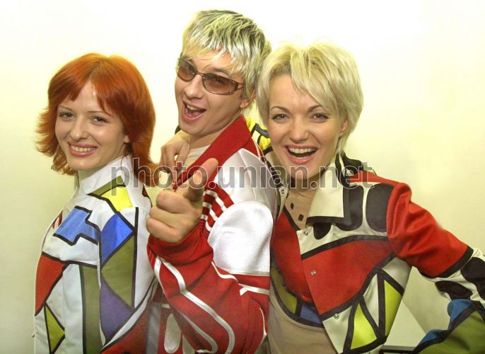 COMM Поп-група "Іграшки" (зліва направо) - Поліна Панченко, Костянтин Ягольник та Світлана Коноваленко під час виступу на урочистостях, присвячених Міжнародному дню студента в Києві, у суботу, 16 листопада 2002р. У цей день кращим студентам були вручені відзнаки Кабінету міністрів України.