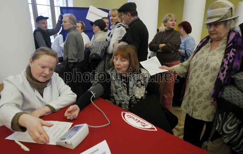 Соціальна інформаційно-просвітницька акція для незахищених верств населення "День профілактики серцево-судинних захворювань" в Києві, в середу, 17 грудня 2014 р. Фото УНІАН