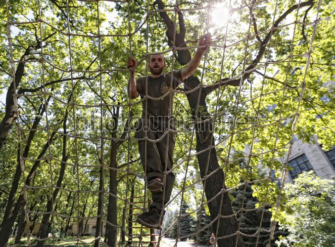 Новобранець проходить випробування "Азов Спартан" у відбірковому таборі полку "Азов", в Києві, 13 червня 2015 р. "Азов Спартан" - останнє випробування, що проходять новобранці у відбірковому таборі полку "Азов". Фото Мусієнко Владислав / УНІАН