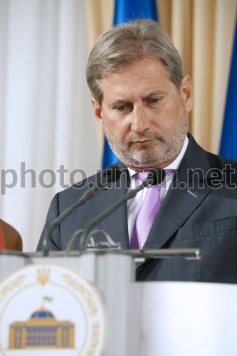 Комісар ЄС з питань європейської політики сусідства, розширення і переговорів Йоханнес Хан під час зустрічі з головою Верховної Ради України Володимиром Гройсманом в Києві, 18 червня 2015 р. Фото Сироткина Анастасія / POOL / УНІАН