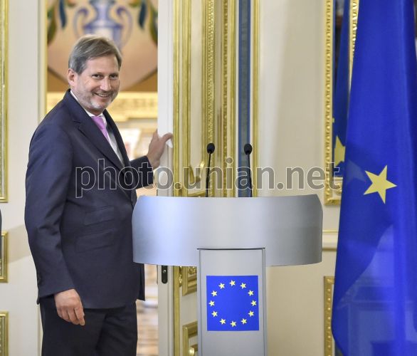 Комісар ЄС з питань європейської політики сусідства, розширення і переговорів Йоханнес Хан під час зустрічі з президентом України Петром Порошенком в Києві, 18 червня 2015 р. Фото Лазаренко Микола / POOL / УНІАН