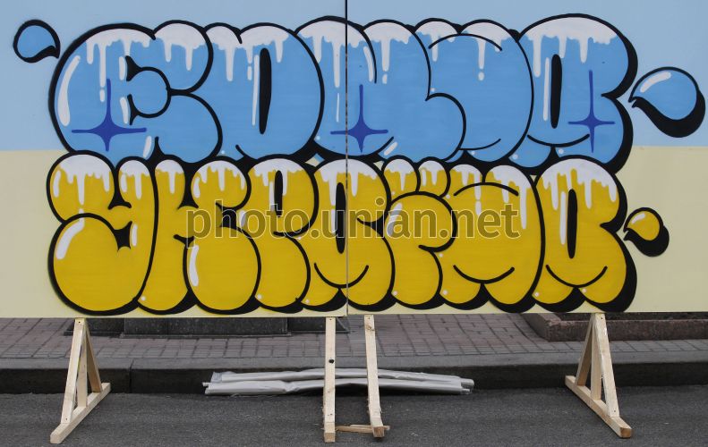 Картина на шести щитах на тему "Єдина Україна" на вул. Хрещатик під час святкування Дня молоді у Києві, 27 червня 2015 р. У цей день у Києві відбулися заходи з нагоди Дня молоді. Фото Корпусенко Борис / УНІАН