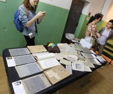Документи підпілля ОУН, що пролежали в землі 65 років, представили в Національному музеї-меморіалі жертв окупаційних режимів "Тюрма на Лонцького" у Львові, 10 липня 2015 р. Близько 300 документів референтури Служби безпеки ОУН Сокальської округи, які пролежали закопаними в землі з 1950 року, зараз на реставрації. Архів знайшли наприкінці травня 2015 року на Жовківщині (Львівська обл. ). Фото УНІАН