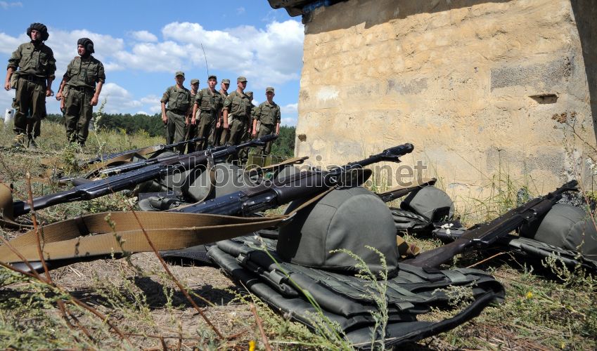 Курсанти Національної академії Національної гвардії п'ятого року навчання під час польового виходу на полігоні в Башкирівці (Харківська обл. ), 7 серпня 2015 р. Цього року ряди Національної академії поповнили курсанти з числа контрактників, які мають вищу освіту, для здобуття освітньо-кваліфікаційного рівня спеціаліст і первинного офіцерського звання лейтенант. Фото Володимир Андреєв / УНІАН