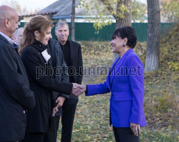 Міністр торгівлі США Пенні Прітцкер та дружина президента України Марина Порошенко у селі Великі Прицьки (Київська обл. ), 27 жовтня 2015 р. Цього дня під час перебування в Україні міністр торгівлі США Пенні Пріцкер у супроводі дружини президента України Марини Порошенко відвідала історичну батьківщину своїх предків – село Великі Прицьки на Київщині. Фото Марків Михайло / POOL / УНІАН