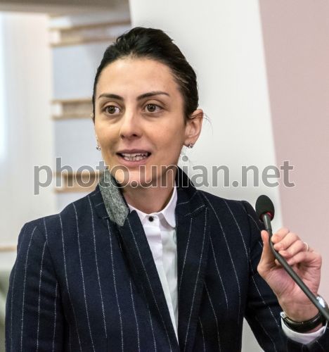 Керівник Національної поліції України Хатія Деканоїдзе привітала з призначенням на постійні посади і вручила спеціальні жетони працівникам поліції України, які першими успішно пройшли атестацію в ряди Нацполіціі, у Києві, 29 грудня 2015 р. Фото Фалін Володимир / УНІАН