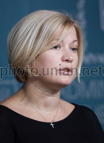 Уповноважений президента з питань мирного врегулювання на Донбасі, представник України в гуманітарній підгрупі Тристоронньої контактної групи, народний депутат України Ірина Геращенко під час брифінгу в Києві, 22 березня 2016 р. Фото Марків Михайло / POOL / УНІАН