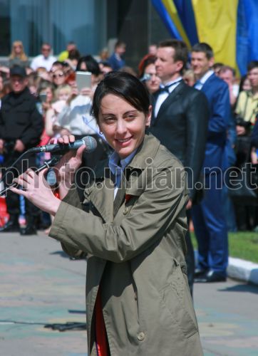 Голова Національної поліції України Хатія Деканоїдзе під час церемонії складання присяги співробітниками нової патрульної поліції, в Сумах, 12 травня 2016 р. Фото Кохан Віталій / УНІАН