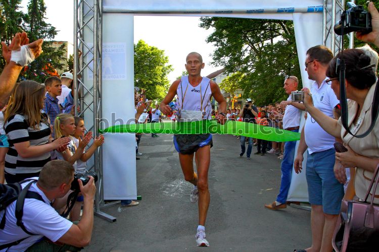 Переможець напівмарафону, присвяченого листоноші Федору Фекеті, ужгородець Орест Бабяк фінішує в Перечині (Закарпатська обл. ), 29 травня 2016 р. Маршрут, завдовшки 21, 5 км, пролягав від центру Ужгороду до центра Перечина. Переможцем напівмарафону став ужгородець Орест Бабяк із результатом 1 година 23 хвилини й 24 секунди. Фото Немеш Янош / УНІАН