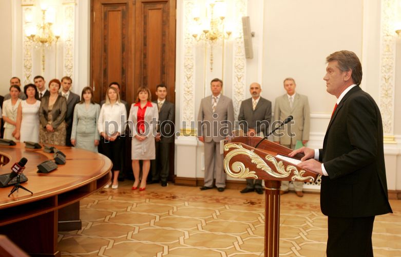 COMM Президент України Віктор Ющенко бере участь в урочистій церемонії складання присяги суддями, вперше призначеними на посаду професійного судді в Києві в середу, 13 червня 2007 р.