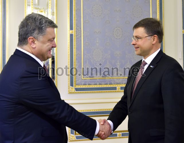 Президент України Петро Порошенко та Віце-президент Європейської Комісії з питань євро та соціального діалогу Валдіс Домбровскіс під час зустрічі, в Києві, 16 вересня 2016 р. Фото Лазаренко Микола / POOL / УНІАН