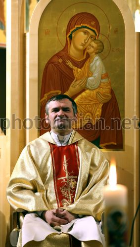 Настоятель парафії св. Йоана Павла ІІ о. Григорій Драус під час святкування Різдва за григоріанським календарем в Українському Католицькому університеті, у Львові, 25 грудня 2016 р. Фото Кравс Євгеній / УНІАН