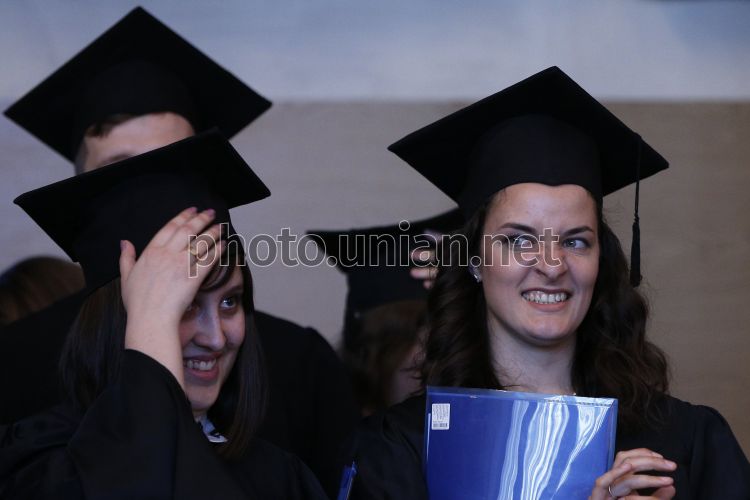 Випускниці під час урочистої церемонії випуску магістрів та бакалаврів Національного університету "Києво-Могилянська академія", в Києві, 28 червня 2017 р. Фото Гонтар Володимир / УНІАН