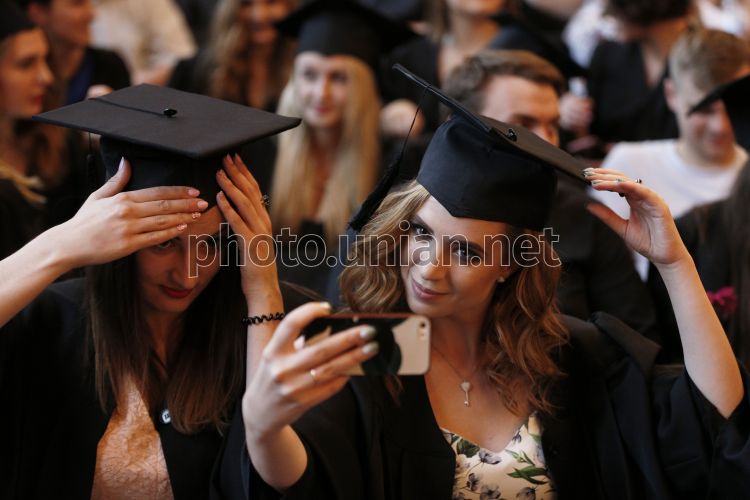 Випускниці під час урочистої церемонії випуску магістрів та бакалаврів Національного університету "Києво-Могилянська академія", в Києві, 28 червня 2017 р. Фото Гонтар Володимир / УНІАН