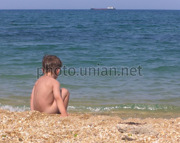 COMM Хлопчик сидить на одному з пляжів Севастополя (Крим) в неділю, 12 серпня 2007 р. Фото Михайла Марківа / УНІАН