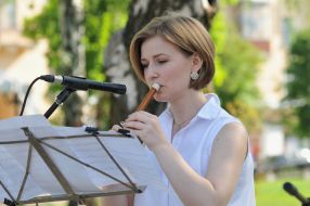 Музикант Божена Корчинська (Україна) грає на сопілці під час виступу в рамках мистецького проекту "Старовинна музика в стародавньому місті", в Чернігові, 6 травня 2018 р. У Чернігові 5-6 травня пройшов мистецький проект "Старовинна музика в старовинному місті". Фото Коваль Володимир / УНІАН